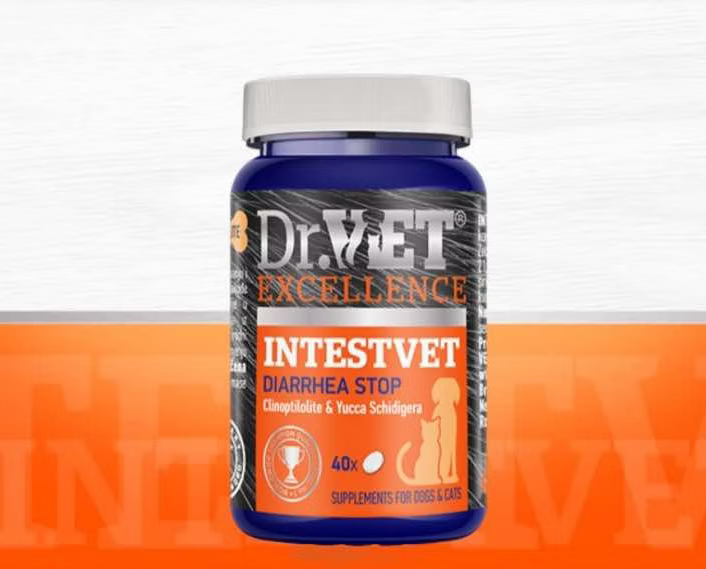 INTESTVET er vara sem ætlað er að koma í veg fyrir og stöðva niðurgang hjá hundum og köttum.