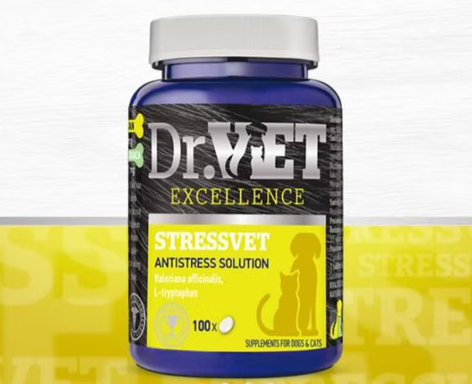 Stressvet er fæðubótarefni fyrir hunda og ketti sem kemur í veg fyrir taugaveiklun og stuðlar að róun á náttúrulegan hátt, án þess að gera þá syfju.